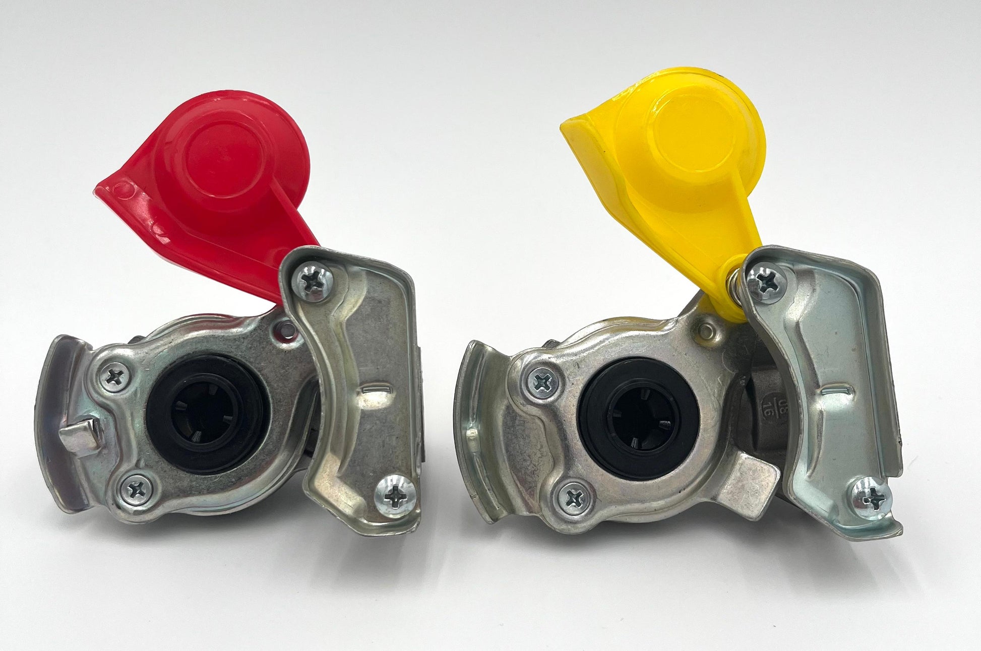 Hochwertiges Druckluft-Kupplungskopf-Set bestehend aus 1x Rot (Vorratsleitung) und 1x Gelb (Bremsleitung)